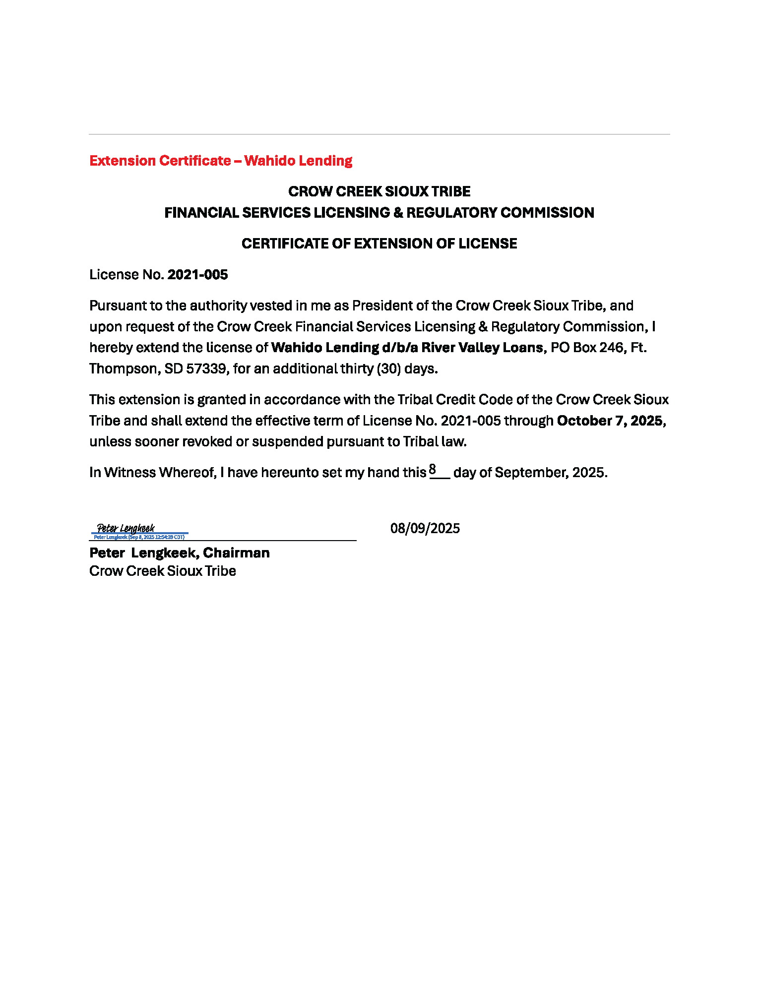 River Valley Loans is a tribal lending entity owned by an American Indian Tribe. We offer online installment loans to anyone, not just tribal members, in times of urgent need, even if they don’t have good credit. We want to help everyone that we can when unexpected financial expenses happen.